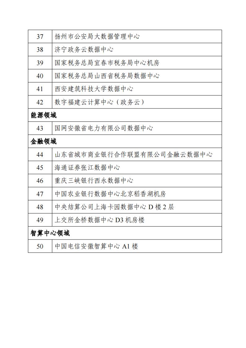 ? ? ?按照《工業和信息化部辦公廳 國家發展改革委辦公廳 商務部辦公廳 國管局辦公室 金融監管總局辦公廳 國家能源局綜合司關于組織開展2023年度國家綠色數據中心推薦工作的通知》(工信廳聯節函﹝2023﹞341號)要求,經地方推薦、專家評審、社會公示等程序,現將2023年度50家國家綠色數據中心名單予以公告。