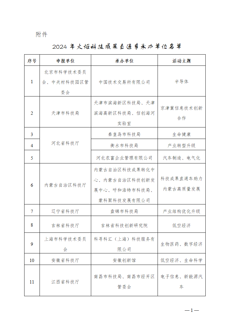 工信部火炬中心|關于啟動2024年火炬科技成果直通車工作的通知