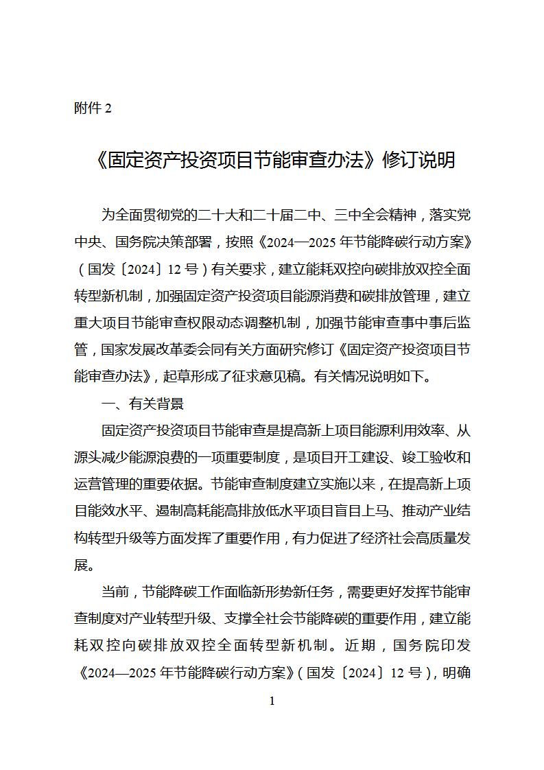 附件:1.固定資產(chǎn)投資項目節(jié)能審查辦法(征求意見稿)