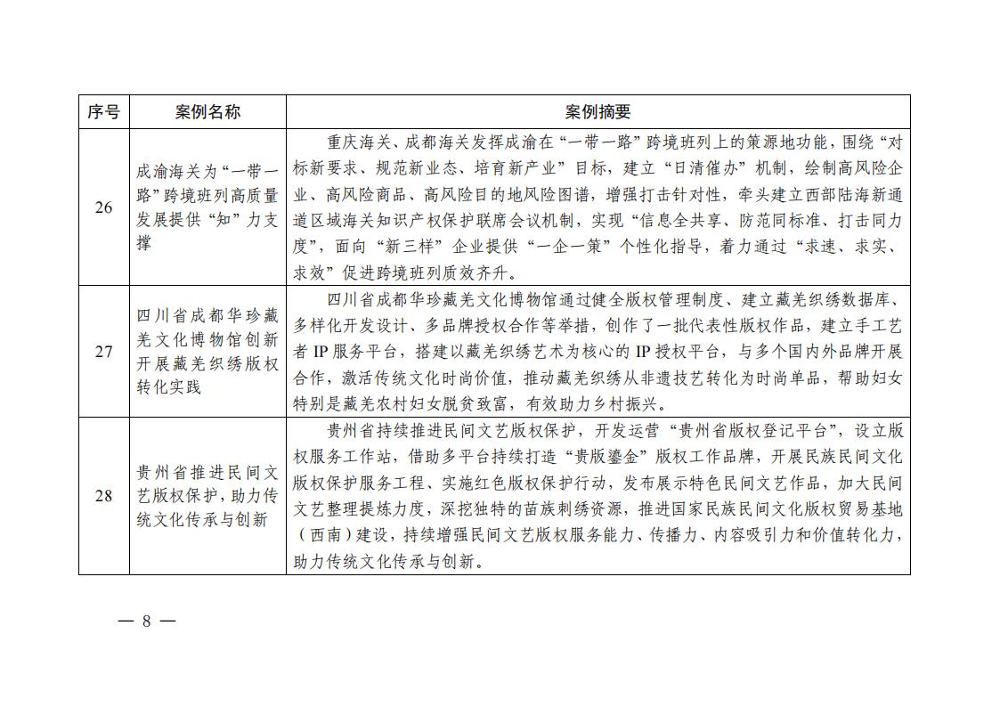 國家知識產(chǎn)權(quán)強(qiáng)國建設(shè)工作部際聯(lián)席會議辦公室關(guān)于印送知識產(chǎn)權(quán)強(qiáng)國建設(shè)第三批典型案例的函