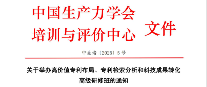 ? ? ?為高質量完成“十四五”規劃收官,高標準謀劃“十五五”規劃發展,中國生產力學會培訓與評價中心定于2025年3月18日—21日在西安、4月22日—25日在重慶舉辦高價值專利布局、專利檢索分析和科技成果轉化高級研修班。