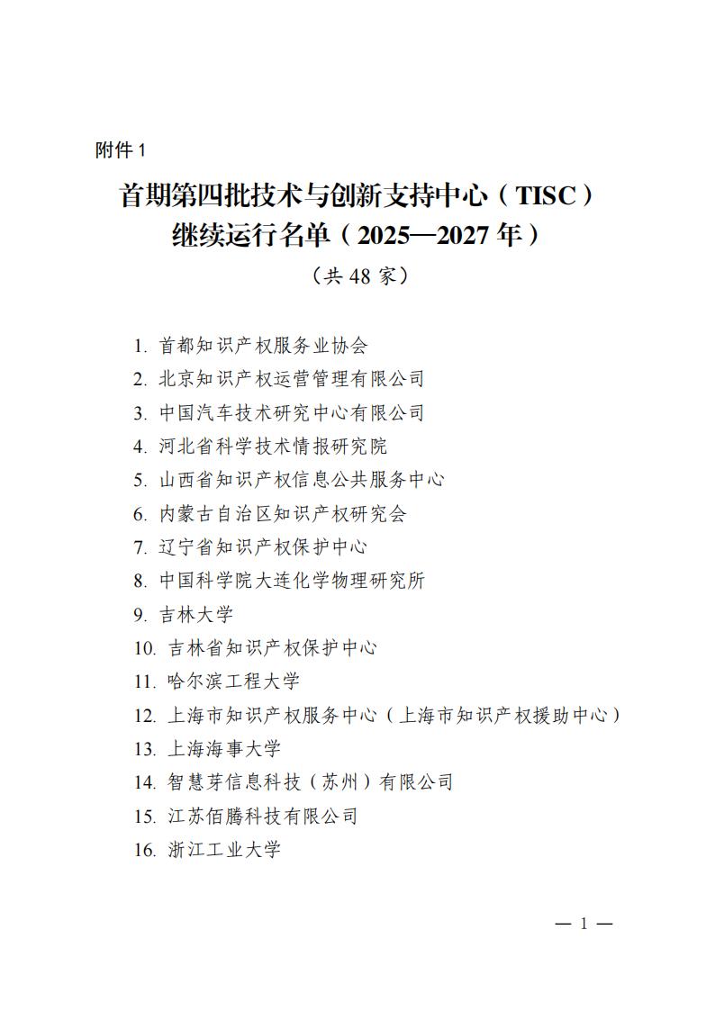 附件:1.首期第四批技術與創新支持中心(TISC)繼續運行名單(2025—2027年)