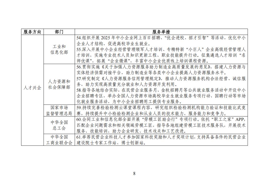 ? ? ?為深入貫徹黨的二十大和二十屆二中、三中全會精神,落實中央經濟工作會議部署,高質量完成《“十四五”促進中小企業發展規劃》目標任務,促進中小企業專精特新發展,工業和信息化部等17部門共同組織開展2025年“一起益企”中小企業服務行動。有關事項通知如下: